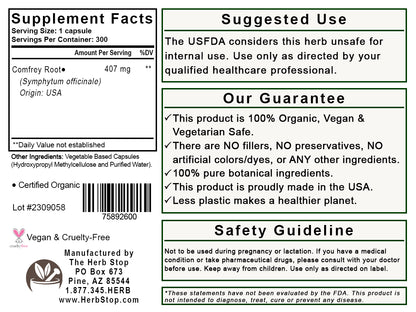 Ingredients: Certified Organic Symphytum officinale (Comfrey) Root in Veggie Caps®.